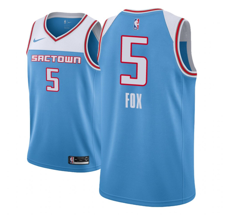 Men NBA 2018-19 De'Aaron Fox Sacramento Kings #5 City Edition Blue Jersey