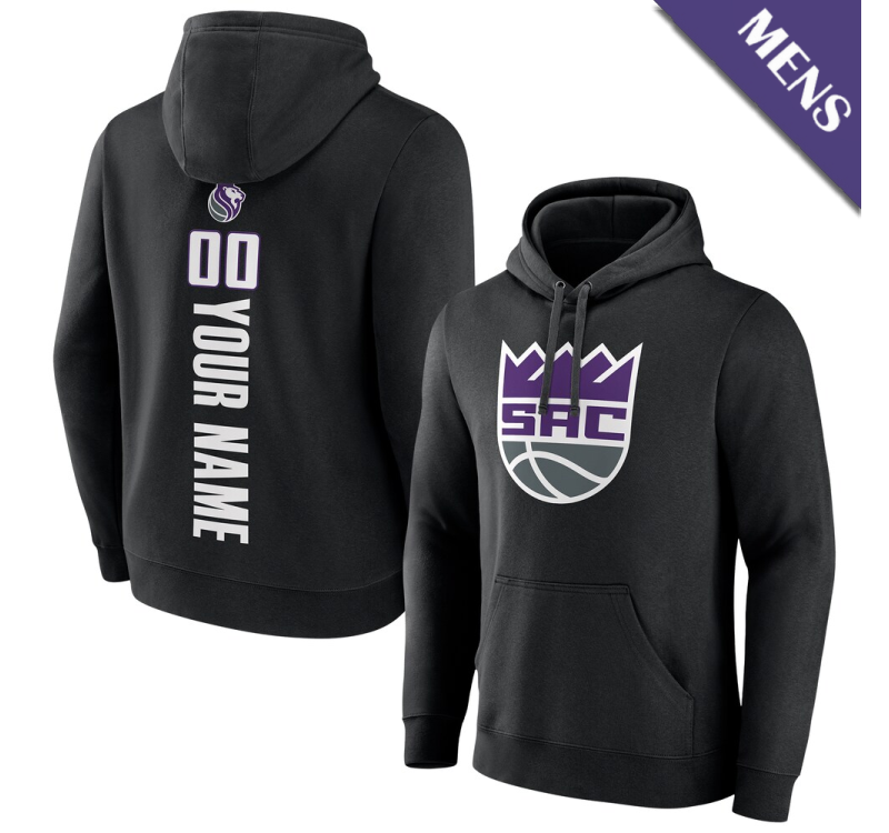 • Custom Sacramento Kings Playmaker Personalized Name & Number Black Men's Pullover Hoodie