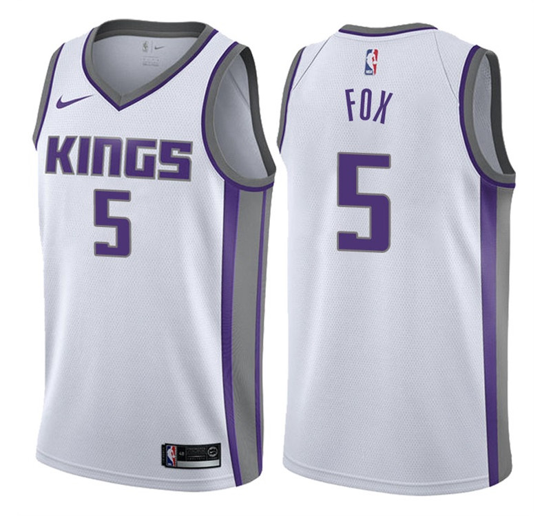 Mens 2017-18 Season De'Aaron Fox Sacramento Kings #5 Association White Swingman Jersey