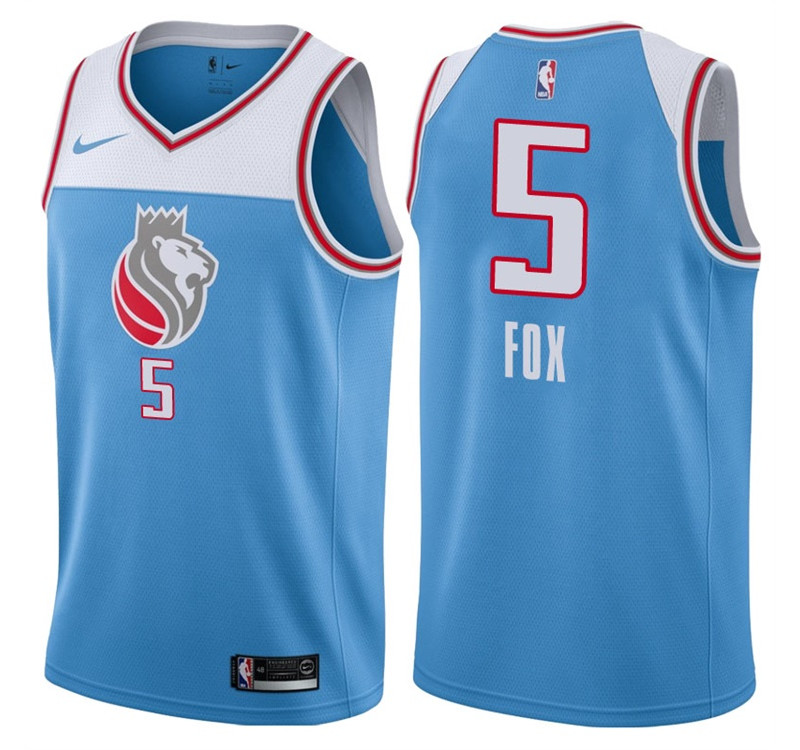 Mens 2017-18 Season De'Aaron Fox Sacramento Kings #5 City Edition Blue Swingman Jersey