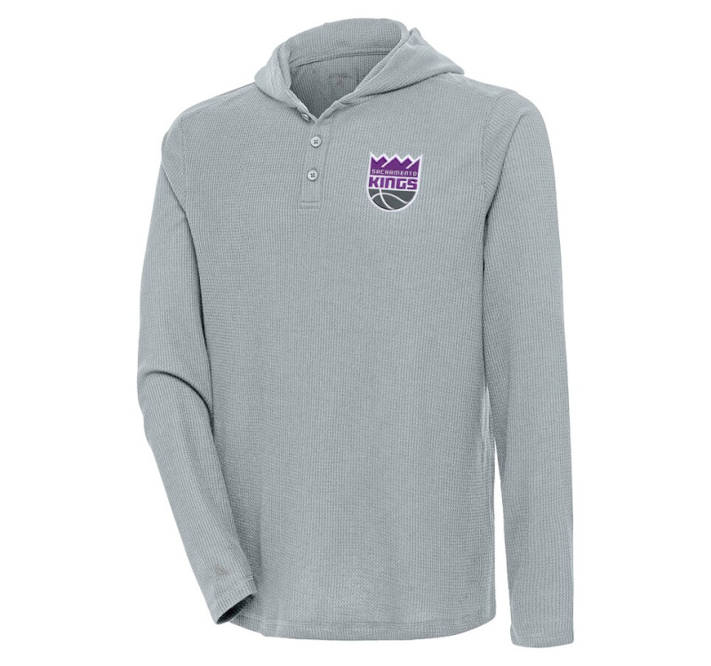 Sacramento Kings Antigua Strong Hold Long Sleeve Henley Hoodie basketball T-shirt - Gray