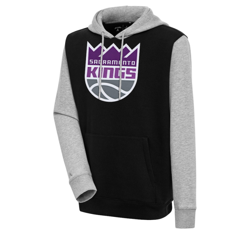 Sacramento Kings Antigua Victory Colorblock basketball Pullover Hoodie - Black/Heather Gray