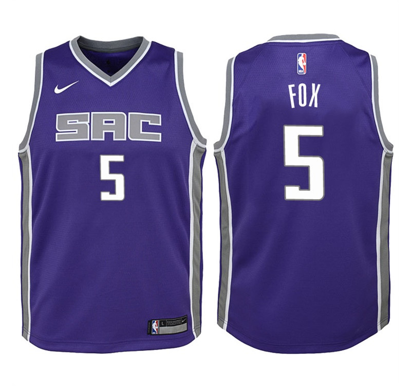 Youth 2017-18 Season De'Aaron Fox Sacramento Kings #5 Icon Purple Swingman Jersey